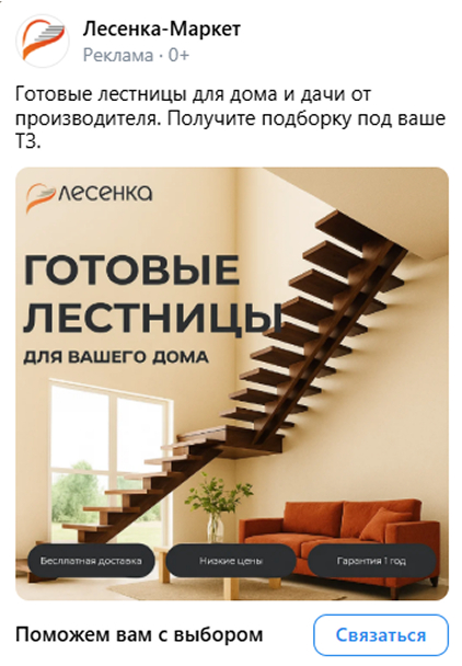 Сильная сторона клиента — уникальные компактные модели и модульные лестницы. В регионах с дилерами (например, Новосибирск) брендовые кампании отключали, чтобы избежать внутренней конкуренции.