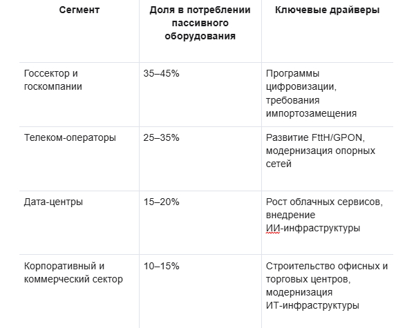 Сегменты государственного сектора и телекоммуникаций представляют собой два крупнейших и наиболее стабильных потребителя пассивного сетевого оборудования в России. Их развитие в период до 2030 года будет определяться как общими рыночными тенденциями, так и специфическими задачами, стоящими перед каждым из них. Анализ показывает, что в обоих сегментах наблюдается уверенный рост, однако механизмы этого роста, ключевые драйверы и ожидаемые изменения в структуре спроса существенно различаются.