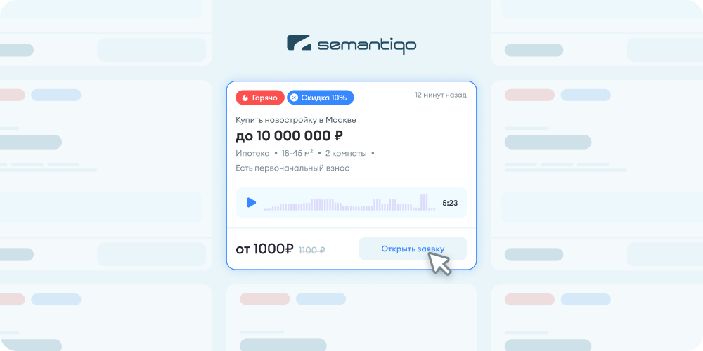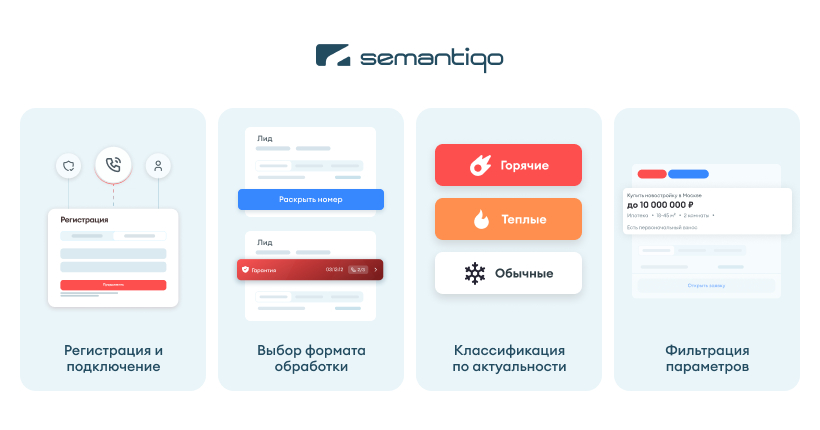Подключение к Semantiqo открывает агентству доступ не к абстрактной «базе номеров», а к платформе, где собраны реальные клиенты с подтвержденным интересом к сделке. Это меняет саму модель работы: фокус смещается с поиска и фильтрации на оперативную обработку обращений.