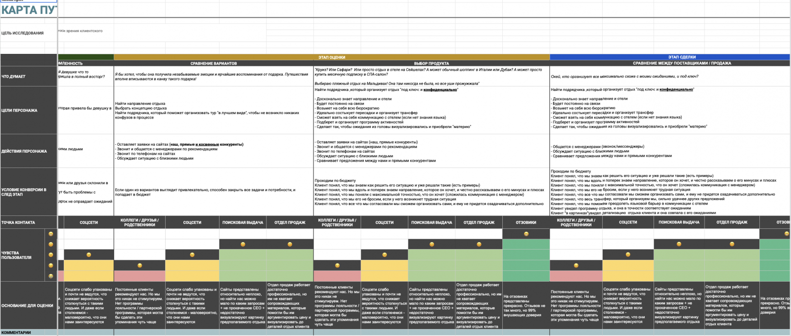Для того, чтобы понять, что именно делать с продуктом (отелем) - нам нужна еще одна, то теперь уже более субъективная модель - CJM, или Карта путешествия клиента.