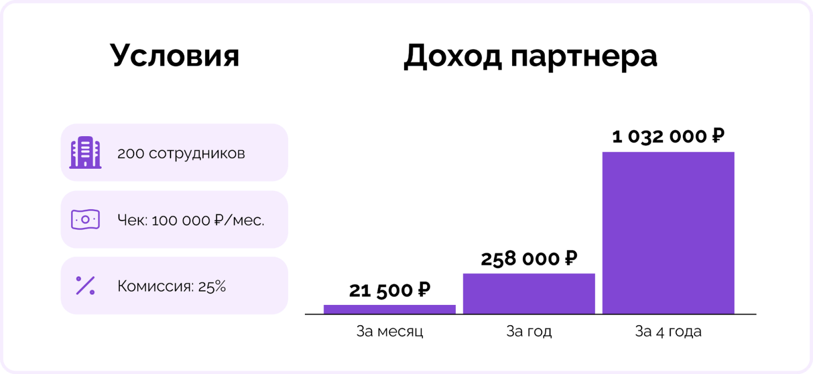 При этом в SaaS-логике есть дополнительный фактор: клиенты часто растут органически — подключают новых сотрудников, докупают модули, расширяют использование на другие отделы. В результате партнерский доход может увеличиваться без агрессивной допродажи, просто вместе с расширением подписки у клиента.