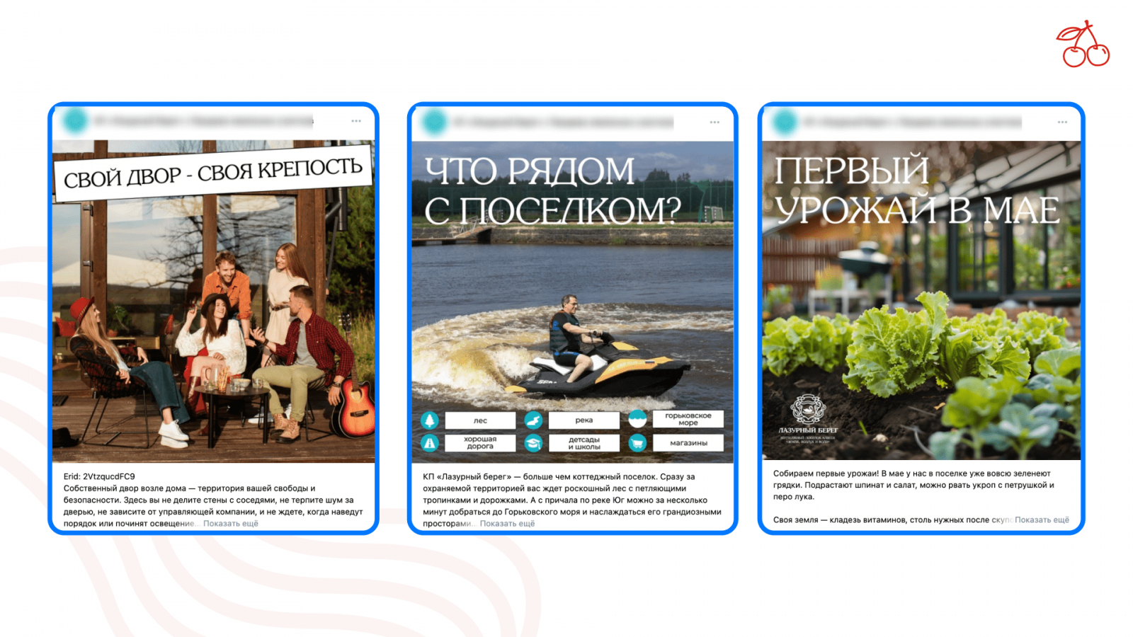 В контенте мы используем темы, которые продают не только конкретный коттеджный поселок, но и в целом идею покупки участка. Также мы добавляем развлекательный контент, который интересно читать всем сегментам ЦА: кто приобретет участок в ближайшее время, кто выбирает между поселками, кто еще думает над покупкой участка в поселке или деревни и т. д. — и подбираем темы для аудитории на всех уровнях принятия решений.