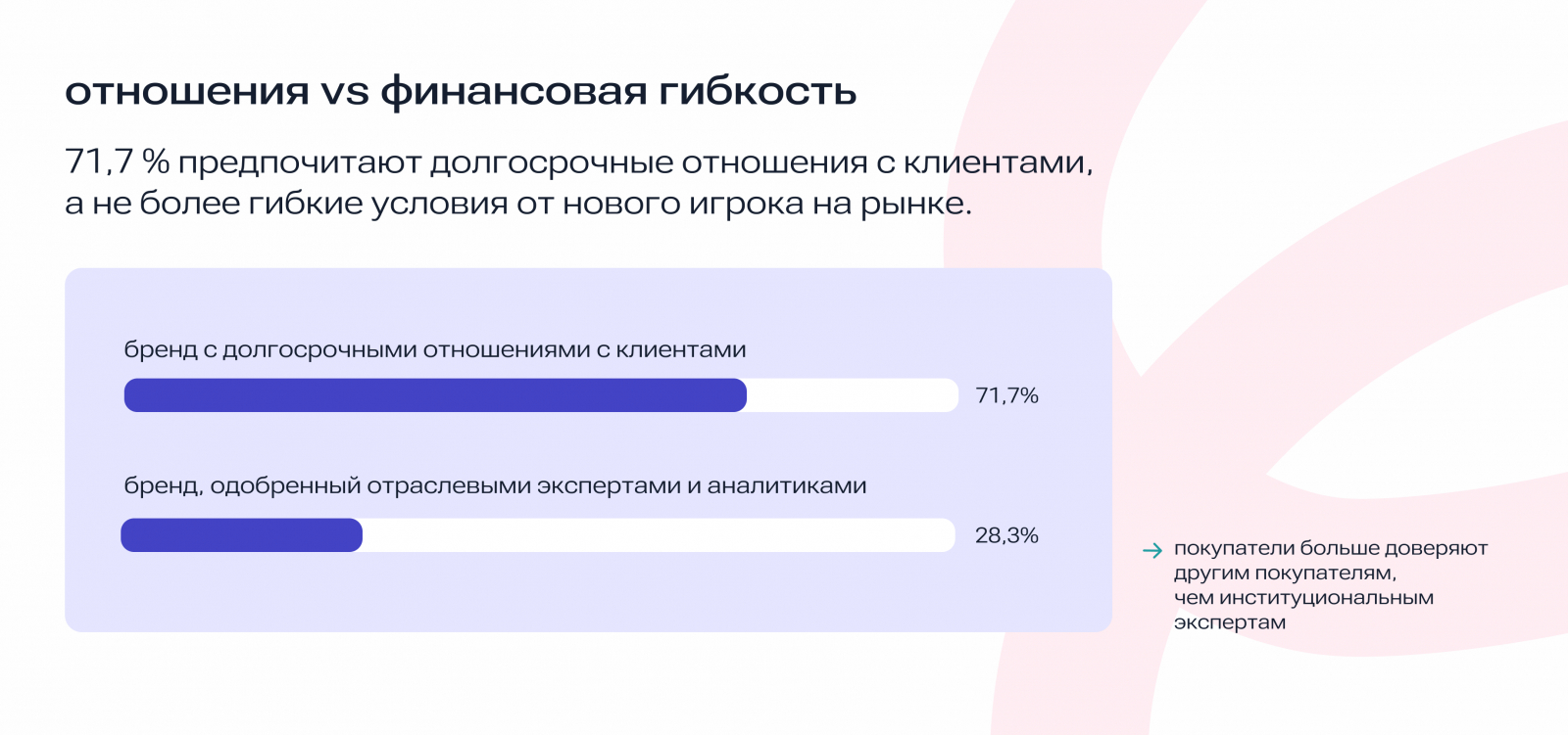 И наконец — что происходит, когда нужно выбрать одного «победителя»? Дальше планку подняли: предложили набор элементов, которые формируют доверие к B2B-бренду, и попросили в каждой паре выбрать только один. Это формат forced-choice: два значимых и ценных варианта сталкиваются лоб в лоб, и нужно принять решение.