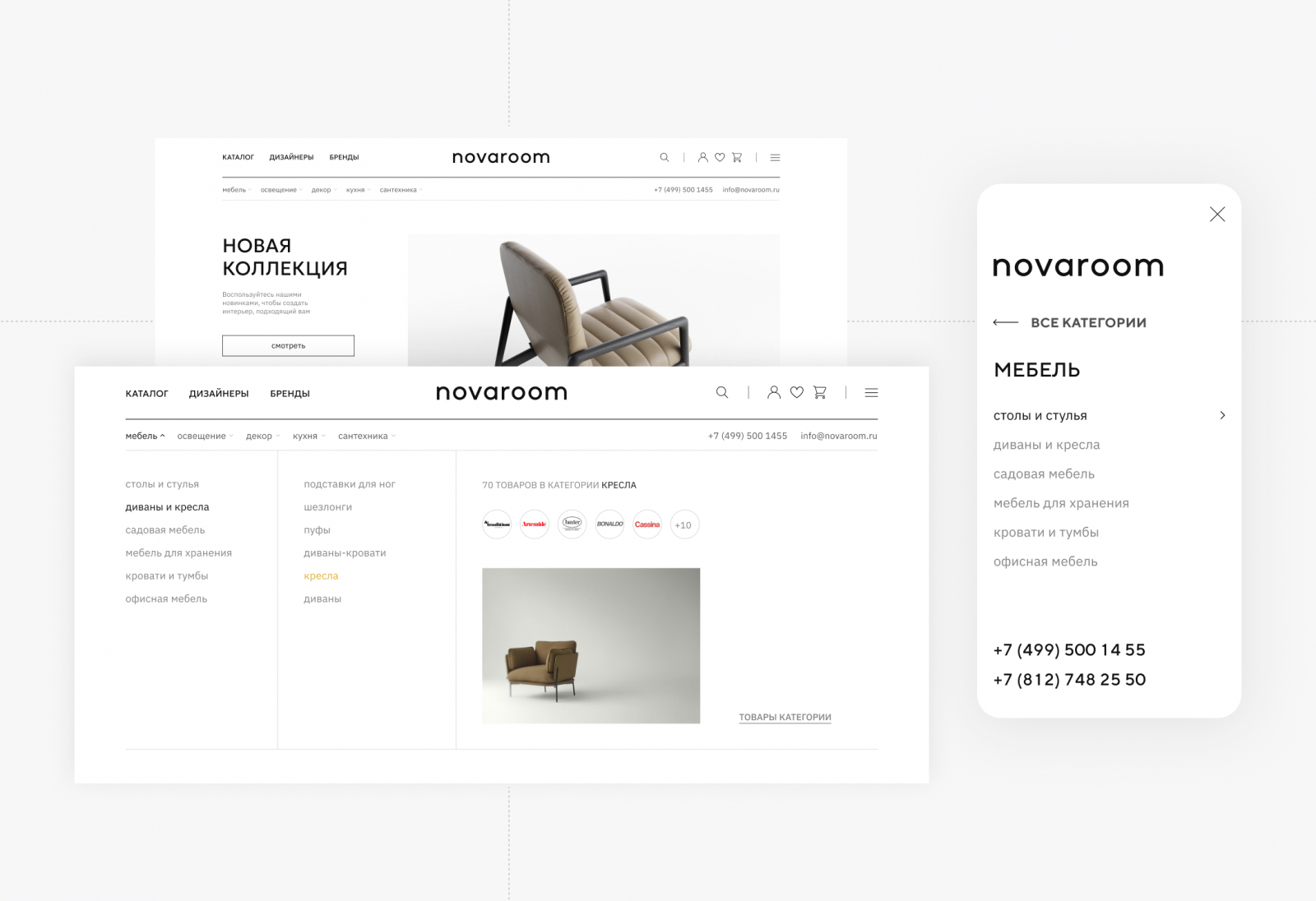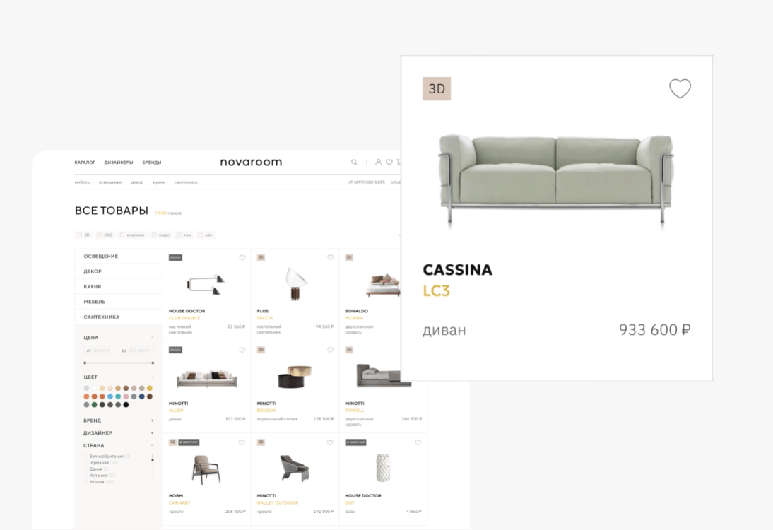 Novaroom — это не просто продажа мебели. Компания создает ценный контент, формируя у пользователей осознанный выбор, поэтому важное место на сайте занимают страницы брендов и дизайнеров, которые помогают найти вдохновение, глубже погрузиться в историю бренда, узнать о его философии и особенностях производства, изучить коллекции и увидеть полный ассортимент продукции бренда.