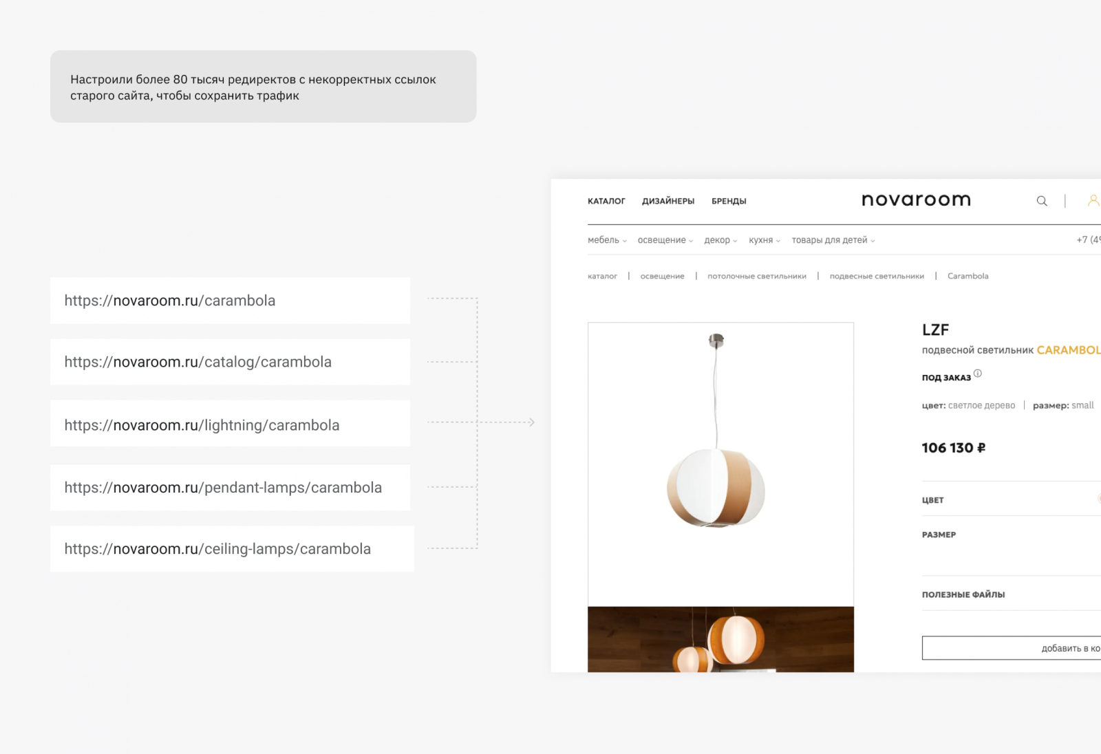 Особое внимание уделили настройке редиректов. Без переноса старых ссылок новый сайт рисковал потерять значительный поисковый трафик и ухудшить свои позиции. Из-за хаотичной структуры URL на старом сайте у одного товара могло быть до десяти различных адресов — задача напоминала сборку огромного пазла из более чем 80 тысяч кусков. В итоге удалось настроить свыше 80 тысяч редиректов, что позволило сохранить ценность старых ссылок для поисковых систем и обеспечить корректную индексацию и удобство навигации для пользователей.