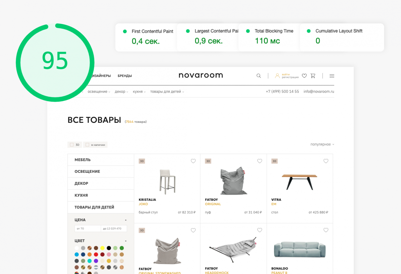 Оптимизировали запросы к базе данных во время фильтрации каталога, уменьшили количество обращений к серверу и сократили время отклика. И конечно реализовали все базовые фишки вроде ленивой загрузки изображений в основных секциях.