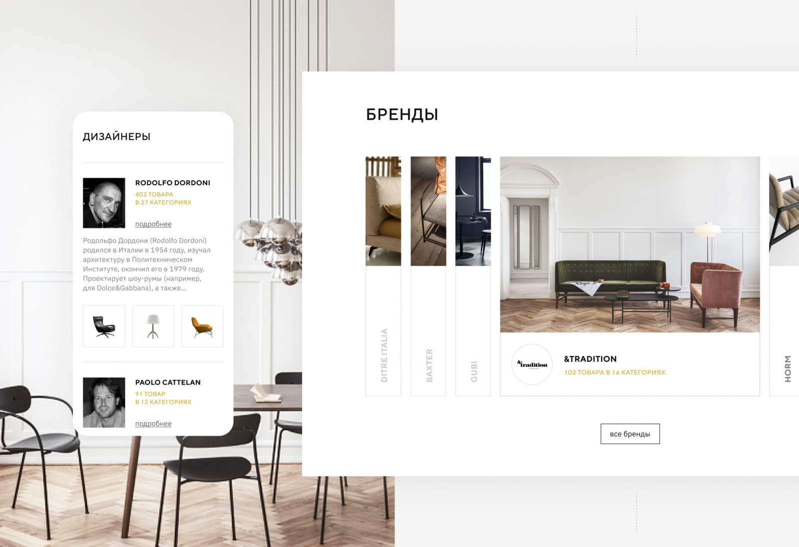 Мы создали функциональную и динамичную платформу для дизайнеров и их клиентов, где каждая деталь продумана до мелочей. Интернет-магазин обновился как визуально, так и технически, сохранив при этом свои главные преимущества — удобство для профессионалов, внимание к мельчайшим деталям и эстетику минимализма, которая всегда в моде.