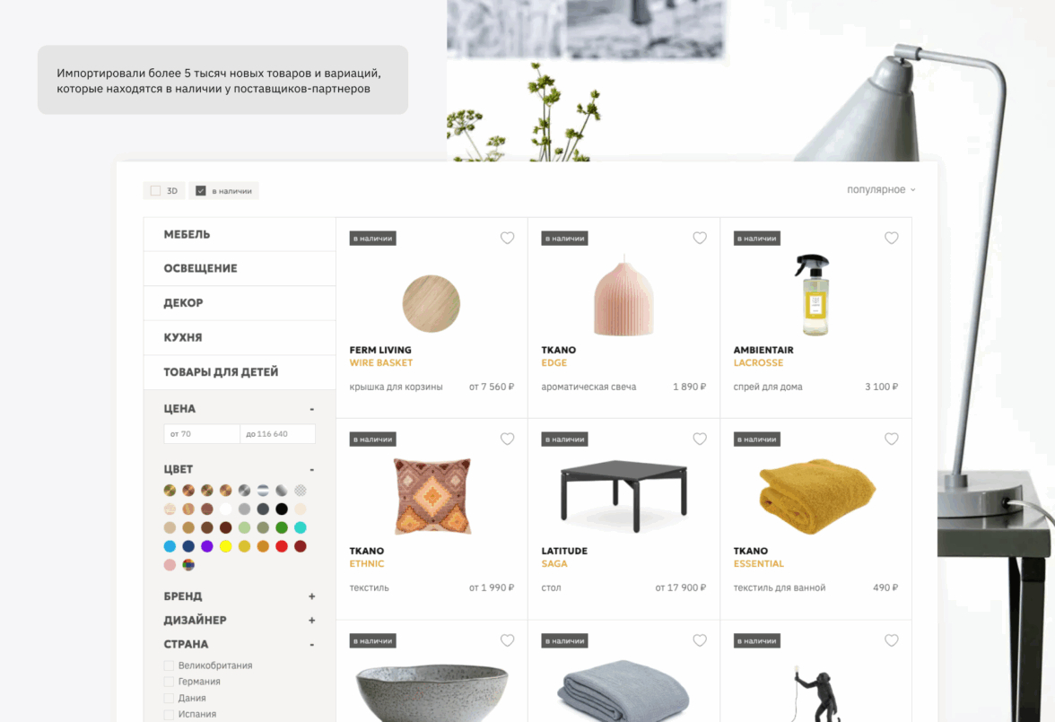 Благодаря фильтрации дизайнеры интерьеров могут быстро найти товары, соответствующие специфическим требованиям проекта, а частные заказчики легко ориентируются в широком ассортименте.