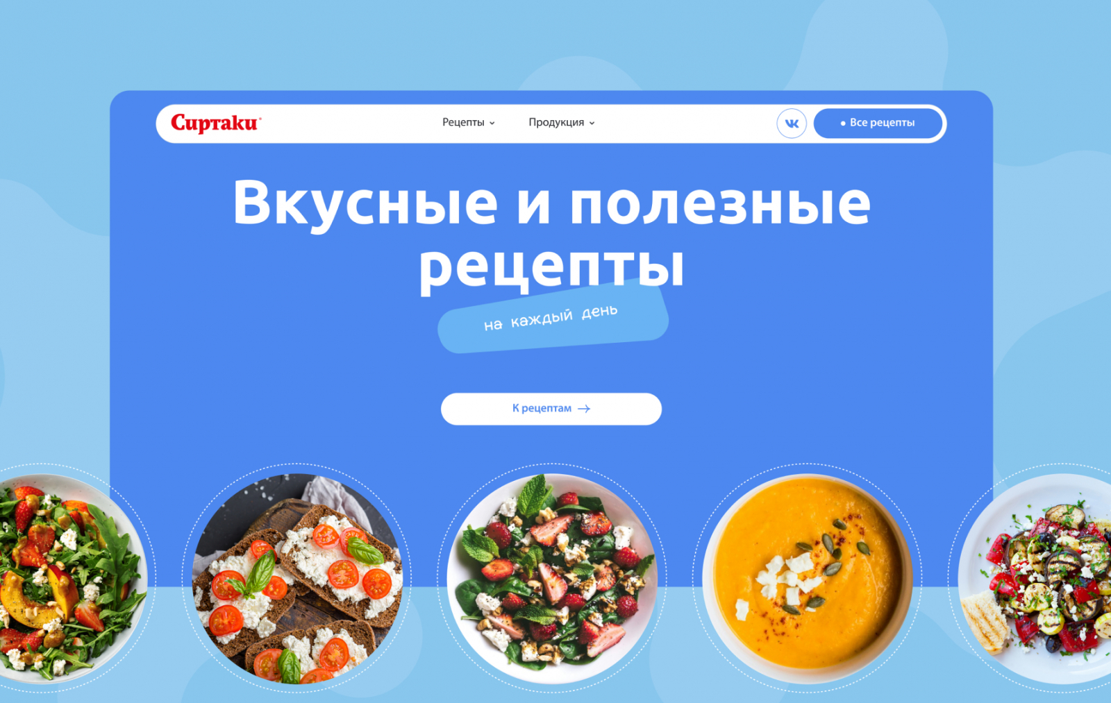 Чтобы реклама работала на полную, сайт должен быть современным, удобным и визуально привлекательным. Аудитория у продукта разновозрастная, поэтому дизайн должен быть ярким, но понятным. Так, чтобы и миллениалы, и их родители легко находили рецепты и с удовольствием возвращались.