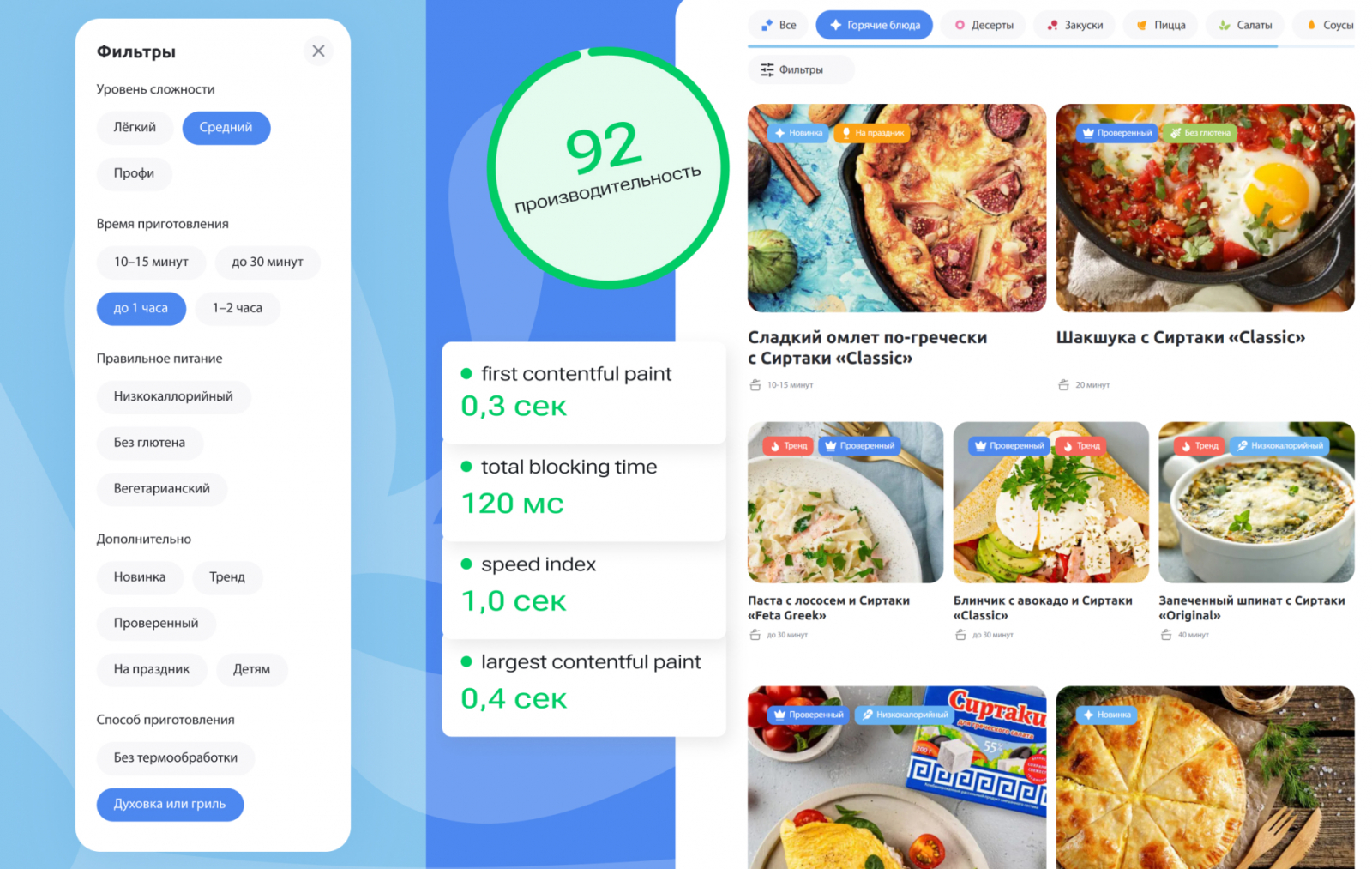 Решение делать отдельные страницы для каждого рецепта и продукта позволило не только улучшить навигацию, но и сделать сайт более гибким для рекламных кампаний. Теперь можно анализировать поведение пользователей, выявлять их интересы и запускать рекламу, нацеленную на конкретные блюда.