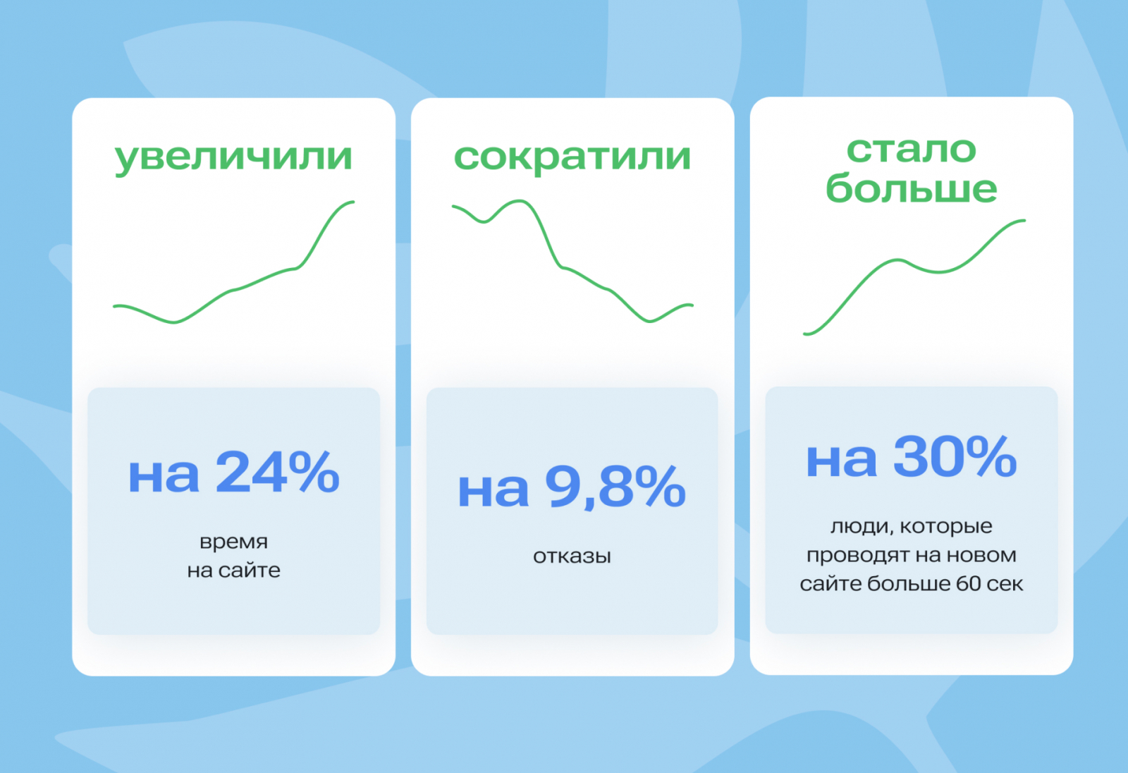 После запуска нового сайта мы отслеживали метрики, проверяли гипотезы и дорабатывали UX, ориентируясь на реальные данные.