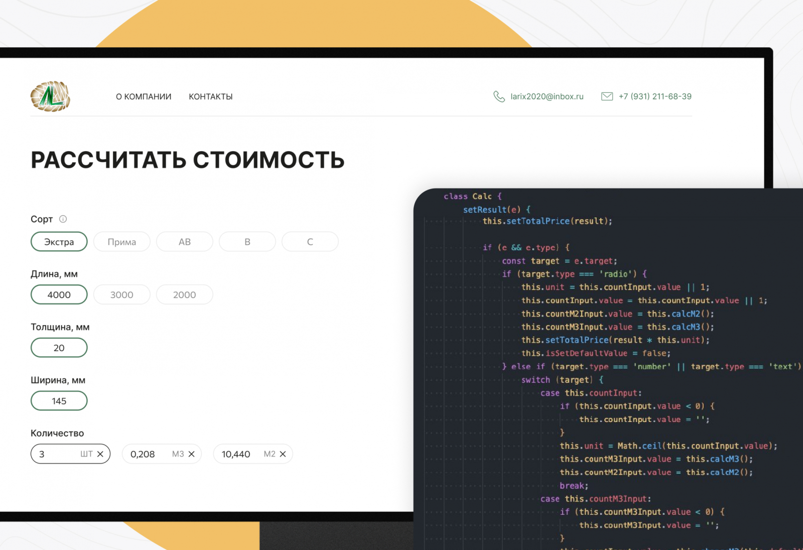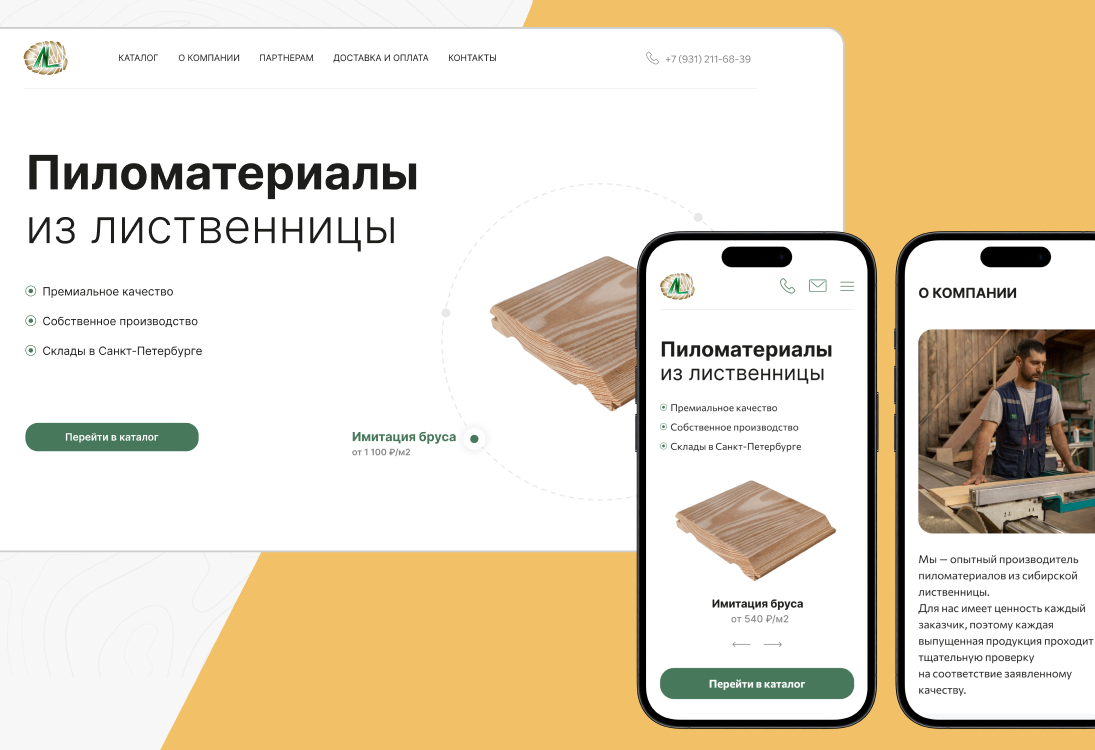 Заказчик — компания-производитель пиломатериалов из лиственницы. Владеет производственными складами в Санкт-Петербурге и Ленинградской области и реализует продукцию как оптом, так и в розницу.