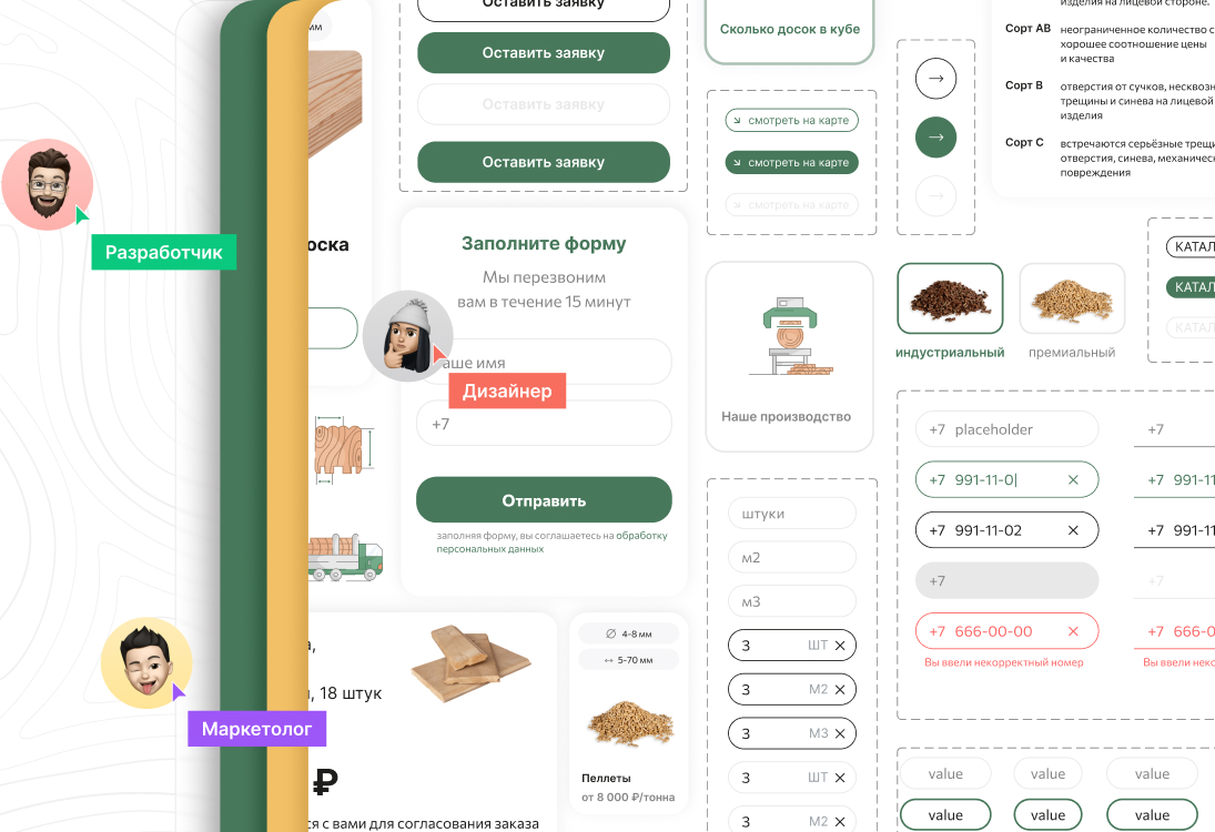 Переключиться на создание новой страницы было легко, потому что визуальная концепция у нас была утверждённая. Мы решили, что сейчас разработаем шаблон страницы по пеллетам, она ляжет в основу остальных страниц для товаров и мы будем использовать их как посадочные для рекламы. При этом нужно спроектировать их так, чтобы на каждую добавлять материалы и отражать преимущества товара.