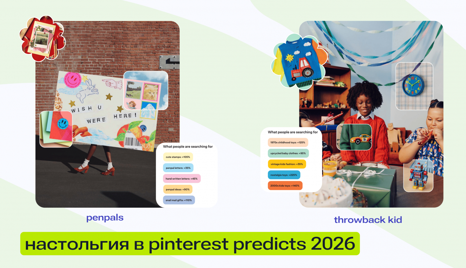 Такой тренд зафиксирован и в отчёте Pinterest — PenPals, этот визуал считывается как что-то родное и теплое, напоминает детские рисунки, и контрастирует с 3D-рендерами и нейросеточной эстетикой. Ностальгия используется не как эскапизм, а как способ снизить тревожность.
