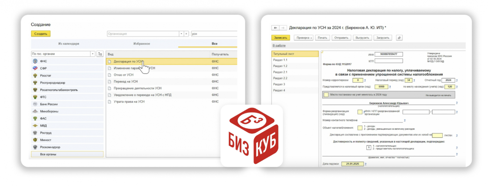 • Электронная подача экономит время и снижает риск ошибок. Сервисы вроде «БизКуб Отчетность» автоматически формируют документы по шаблонам, заполняют данные и проверяют их на ошибки, а затем отправляют формы напрямую в ведомства.