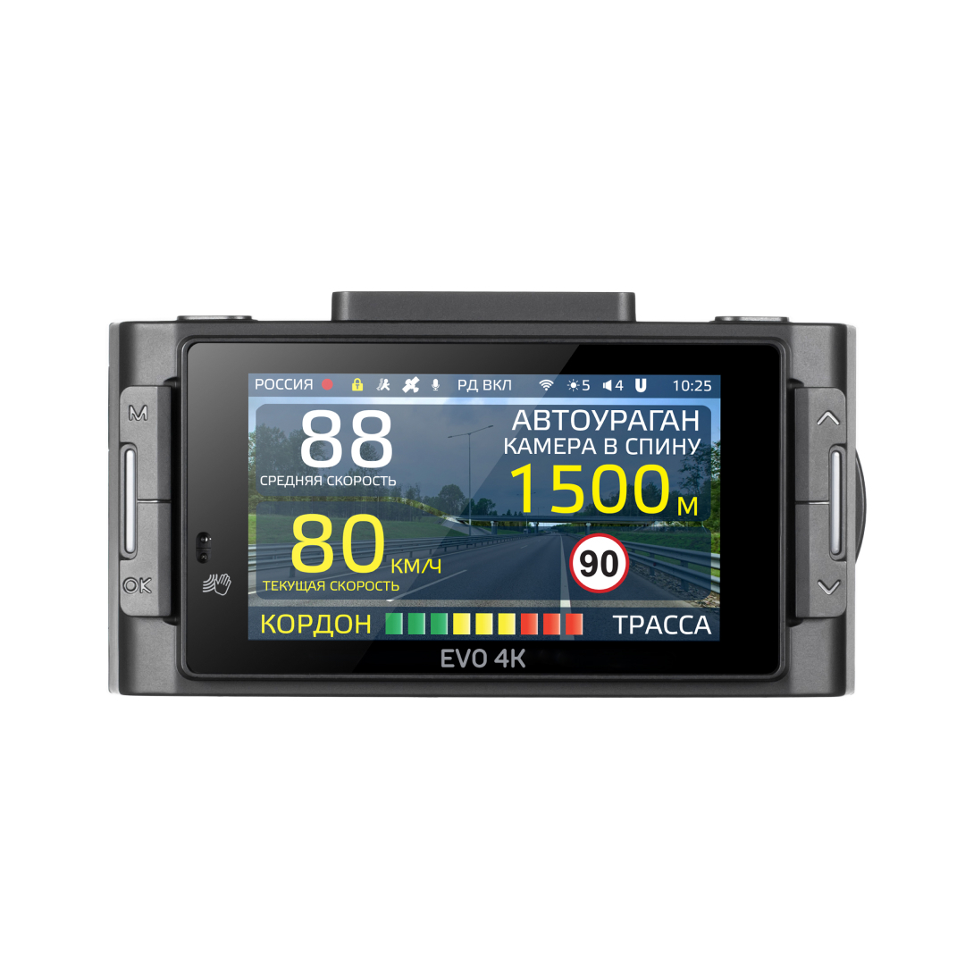 Действительно снимает в 4K, хорошо работает в условиях недостаточной освещённости, широкий динамический диапазон. нормальное комплексное решение: видеорегистратор + радар-детектор. Единственный недостаток — премиальная ценовая категория.
