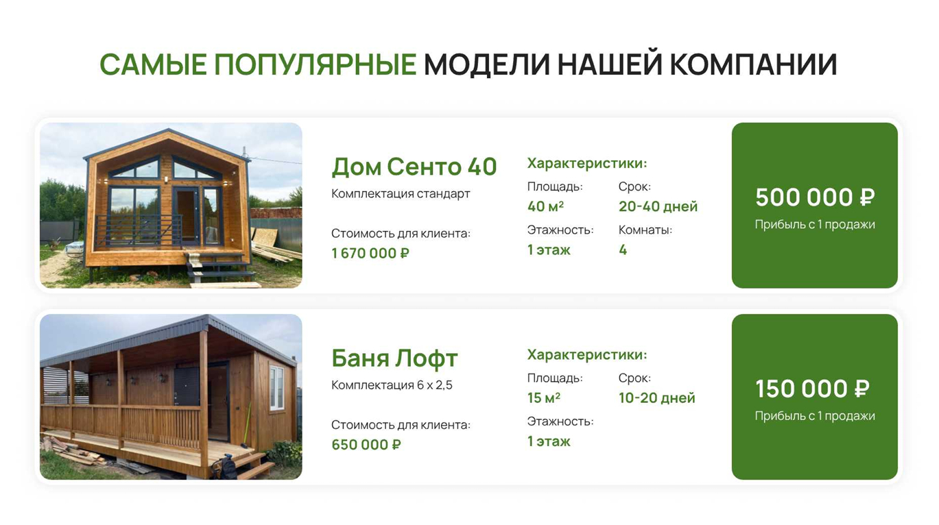 «Управляющая компания предлагает франшизу с производством. Это дороже — вложения от миллиона рублей, но маржа выше. Ты не только строишь, но и производишь конструкции. Это следующий уровень».