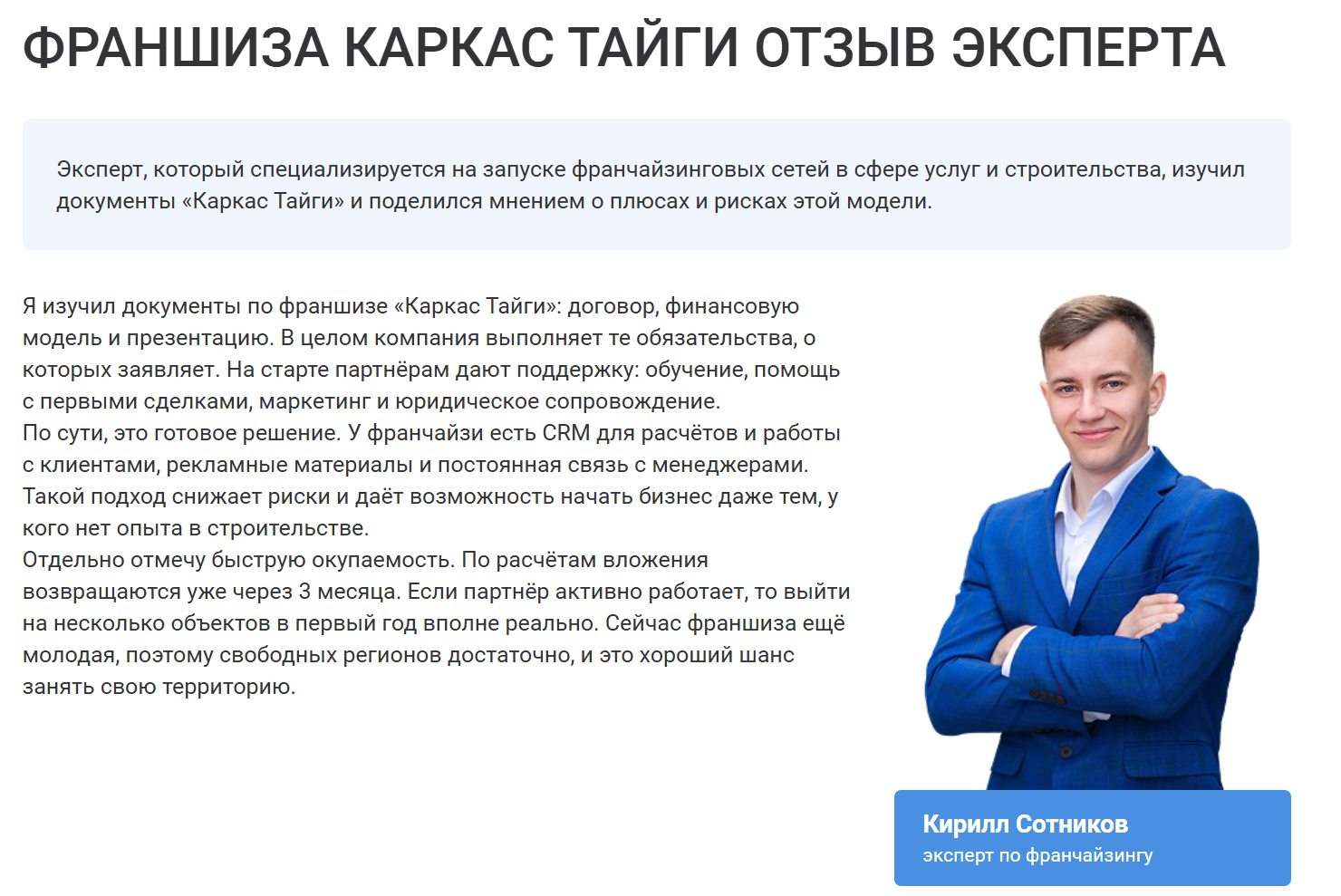 Роман, 36 лет, Пенза.Двенадцать лет в IT-компании — аналитик, отчеты, совещания, KPI. Стабильная зарплата 120 тысяч, но полное выгорание. Хотел своё дело, но не знал, в какую сторону копать. Случайно увидел презентацию Каркас Тайги на форуме предпринимателей.