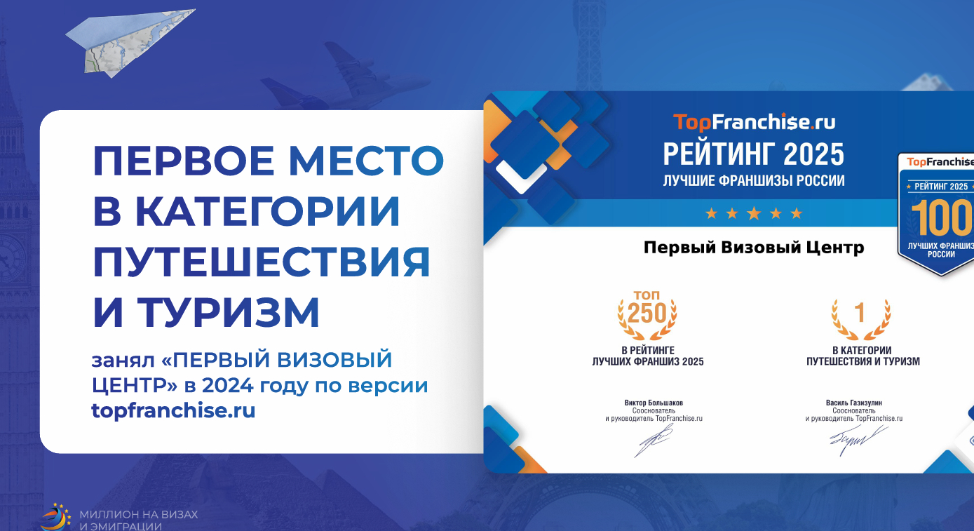 Один из лидеров рынка — франшиза Первый Визовый Центр. Компания работает с 2012 года, открыла 105 офисов по России и СНГ. Стартовые инвестиции — от 490 000 рублей, включая паушальный взнос и первоначальные расходы.
