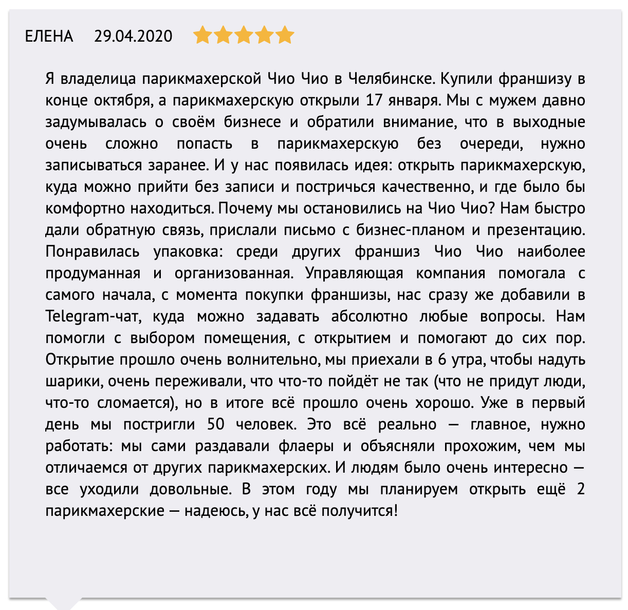 Тем не менее «Чио Чио» остаётся одной из немногих сетей, где стандарты реально работают, а бренд узнаваем на уровне федеральных игроков. Это создаёт устойчивый поток клиентов и даёт франчайзи уверенность в будущем.