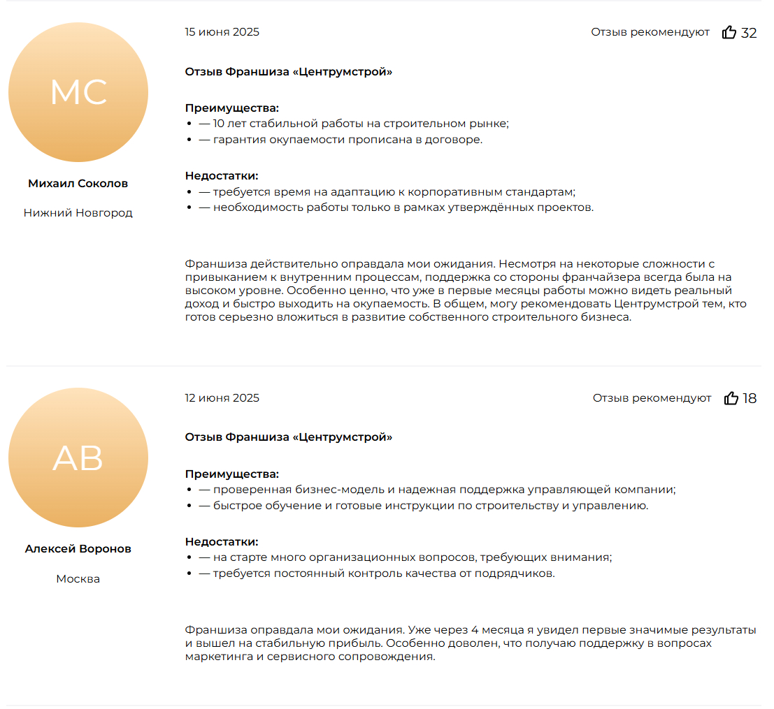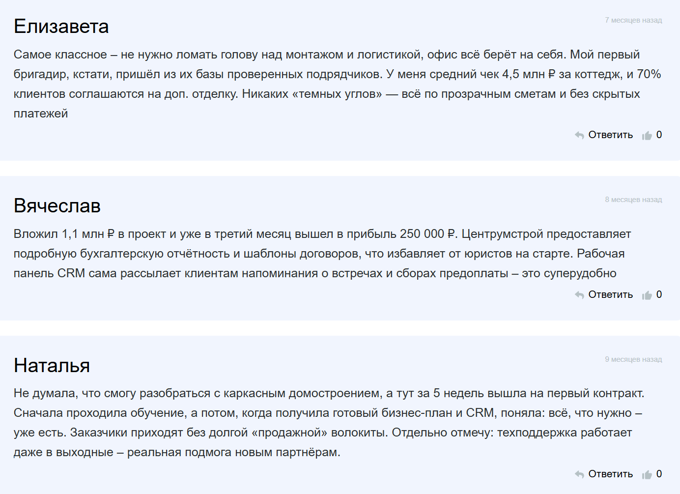 Теория – это одно, а практика другое. Поэтому я изучил отзывы реальных франчайзи Центрумстрой, чтобы понять, как работает модель на земле.