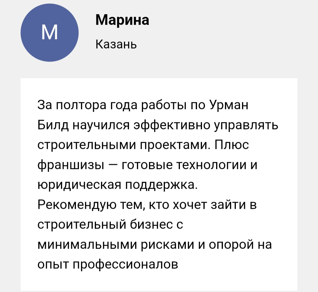 Строительство — это серьезный мужской бизнес со стабильно высоким спросом. Франшиза «УрманБилд» делает этот путь прозрачным и предсказуемым. Если вы давно мечтали о своем деле в реальном секторе экономики, но боялись технических сложностей, то эта модель создана для вас. Сочетание высокой скорости возведения объектов и мощной маркетинговой поддержки позволяет быстро масштабироваться и занять лидерские позиции в своем регионе.