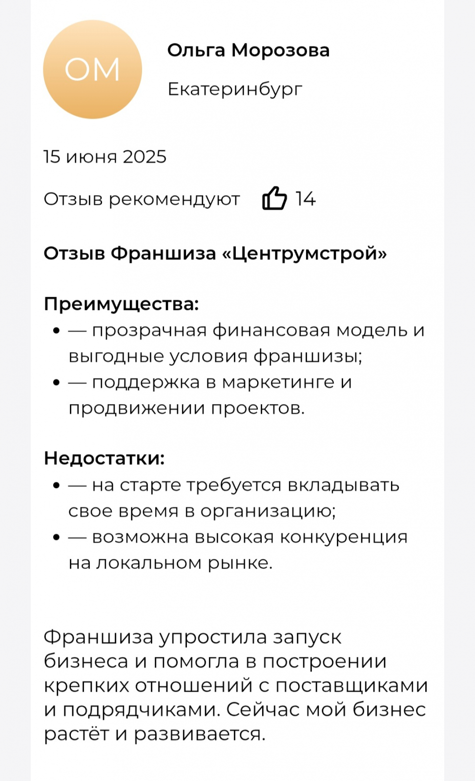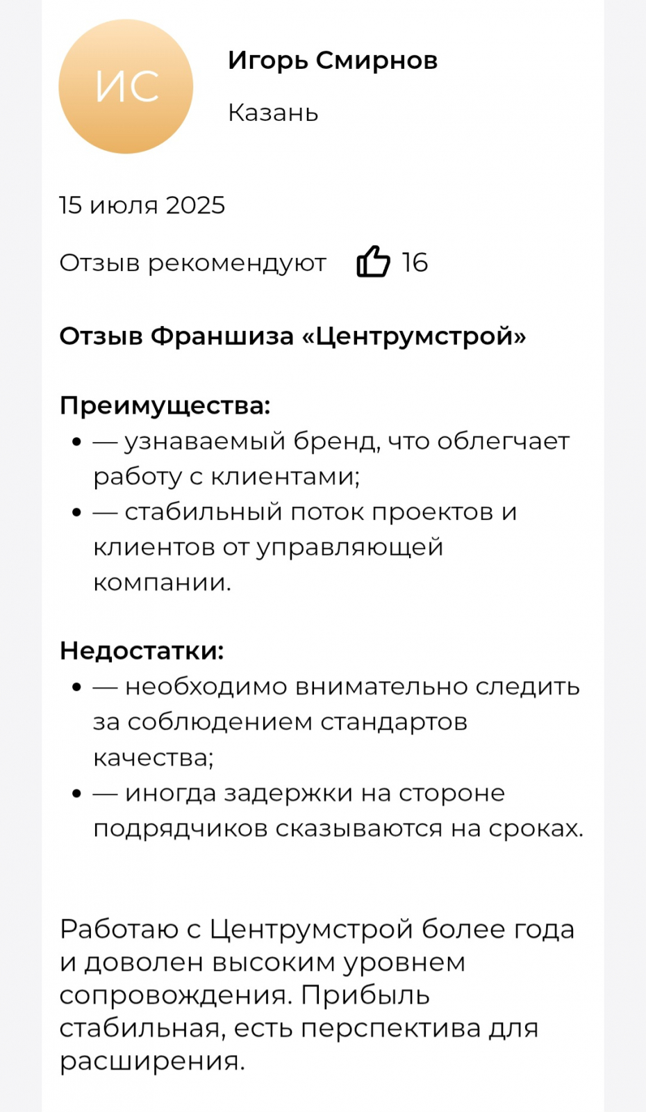 Детальнее изучить отзывы о франшизе Центрумстрой можно на специализированной платформе по оценке франчайзинговых предложений.