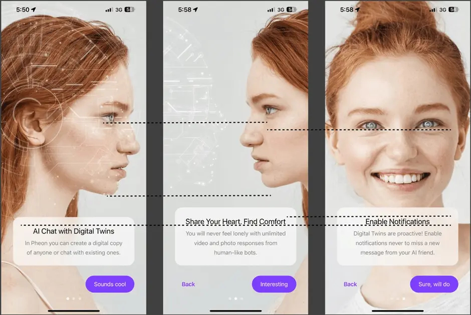 В приложении Pheon человек может найти виртуального друга или создать цифровую копию реального человека, например загрузить фотографию бывшей девушки и пообщаться с ней. Бот умеет писать текст, записывать видео, а еще его легко кастомизировать — наделить уникальными чертами характера и научить отвечать.