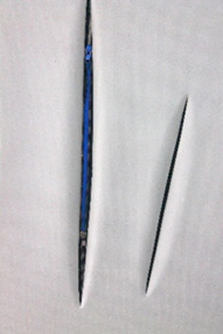 Холст, сшитый из двух равных частей, обращённых окрашенными поверхностями в противоположные стороны, натянут на деревянный подрамник одним краем сверху, а другим снизу. На окрашенных поверхностях холста сделаны прорези. Их края вывернуты в противоположных направлениях по отношению к плоскости холста.
