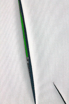 По направлению к правому краю картины холсты расходятся. Между ними появляется внутреннее пространство. В верхний холст вшита молния синего цвета с бегунком, обращённым в противоположную сторону. Её можно открыть при помощи бегунка только сквозь прорезь на нижнем холсте с обратной стороны картины. В зависимости от того, закрыта или открыта данная молния, верхний холст может быть локально сквозным или тупиковым.