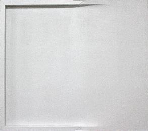 В данном случае мы не используем пятно, линию и цвет, а работаем с трёхмерным пространством, подрамником и двухмерным холстом с обратным заворотом на подрамник: край холста заведён под подрамник снизу. Таким образом, холст одной и той же картины одновременно натянут на подрамник и сверху, и снизу. Несмотря на кажущуюся простоту, однозначная трактовка наблюдаемого исключена. В этой ситуации нам остаётся предположить невозможное: перед нами переход лицевой стороны одного и того же холста в оборотную. При этом левая и правая части холста и обе его противоположные поверхности функциональны и равнозначны, а значит, прежнее разделение сторон картины на лицевую и тыльную, обусловленное невозможностью одновременно обозреть их с одной точки, более не актуально.