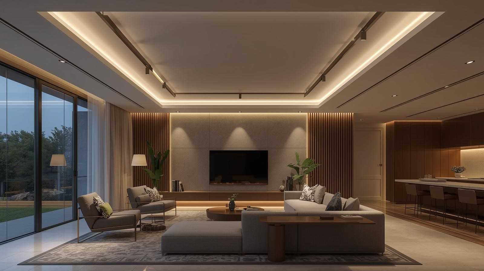- Светодизайн — профессиональный подбор и установка трековых систем, парящих световых линий, контурной подсветки.