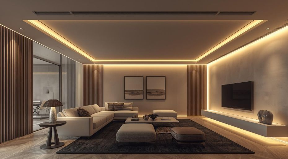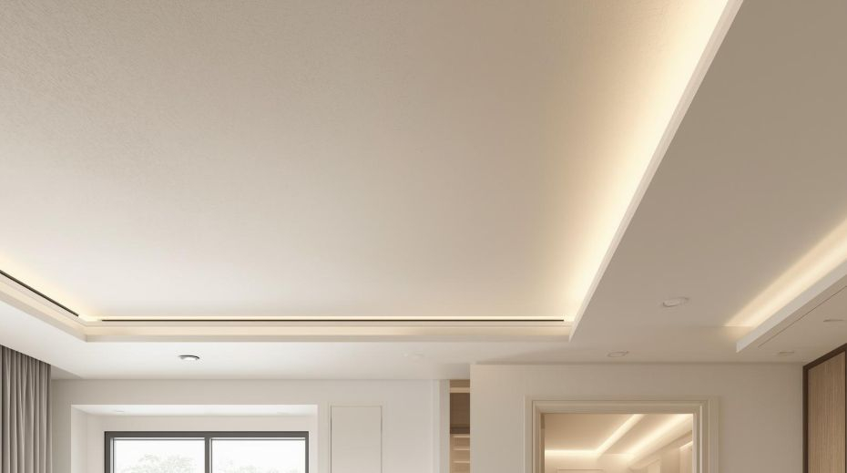 Для интеграции линейного освещения используются профили Flexy и Slott, позволяющие создавать ровные световые полосы без видимых источников света. Такие конструкции формируют эффект «парящего» потолка и становятся ключевым элементом современного интерьера.
