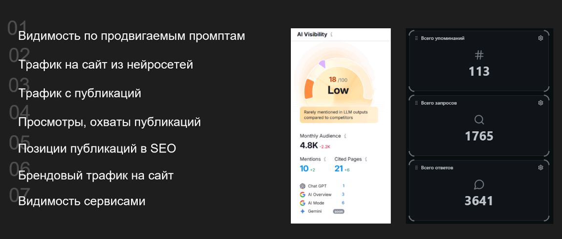 Летом 2025 мы провели эксперименты на собственном сайте агентства и поделились гайдом и результатами. За 35 дней попали в выдачу сразу 5 нейросетей. После публикации получили первые запросы от заказчиков и начали развивать услугу на рынке.