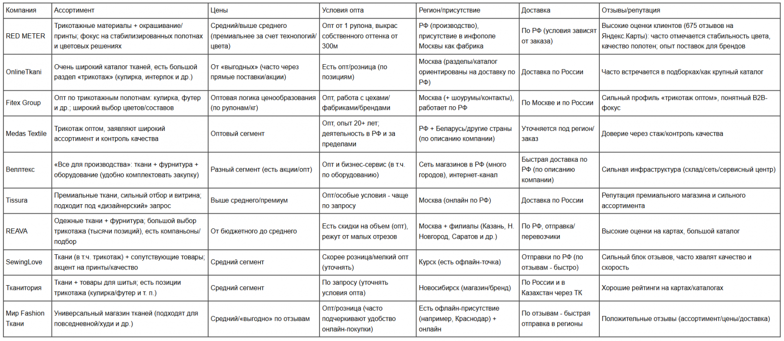 Подбор надёжного поставщика трикотажного полотна играет ключевую роль для швейных брендов, ателье и розничных клиентов: именно от него напрямую зависит качество материала, равномерность партий и оперативность поставок. При слабом контроле качества, отсутствии прозрачных документов или неудобных условиях закупки и логистики часто возникают сбои в сроках, отклонения оттенков и дефектная продукция — вот почему обзор лидеров позволяет оперативно оценить фирмы по каталогу, уровню обслуживания и стабильности, чтобы найти идеального партнера.