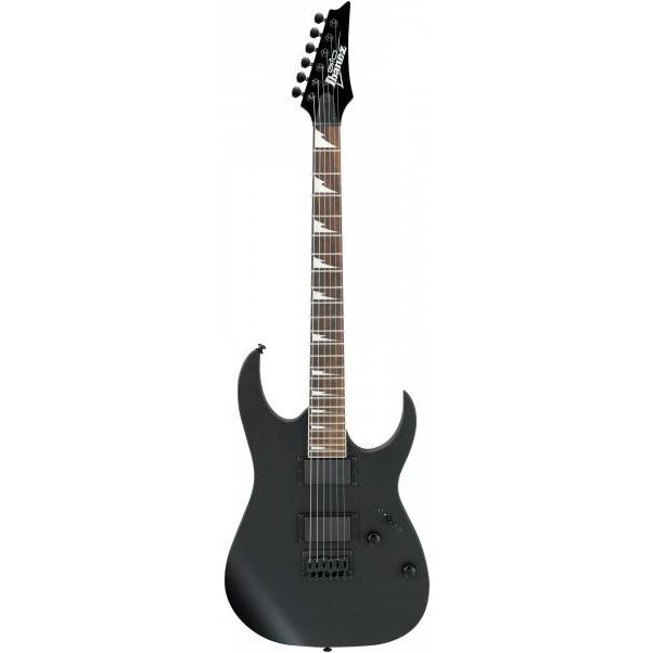 IBANEZ GIO GRG121DX-BKF BLACK FLAT - одна из наиболее дешевых моделей в списке лучших гитар для метала 2026. Гитара сделана в классической суперстрат-форме и ориентирована на скоростную технику и сложные соло.