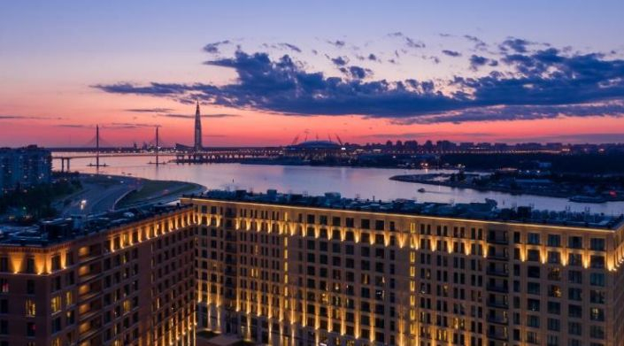 Мультиформатный комплекс (3*–5*) с международными брендами. Дизайнерская отделка, полное оснащение номеров. Инфраструктура – одна из лучших на рынке: фитнес, бассейн, коворкинги, конференц-залы, рестораны, паркинги, закрытая территория. Проект уровня «город в городе», закрытая территория – большая редкость. Имеет отраслевые награды.