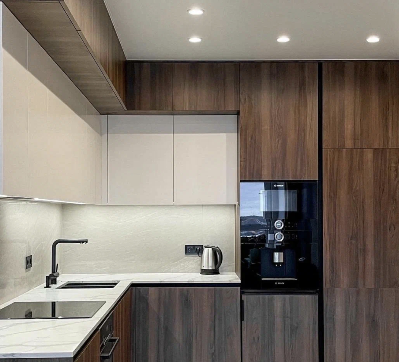 Кухни становятся все компактнее, а бытовых приборов требуется все больше. Решение — техника «два в одном». Например, духовой шкаф с функцией микроволновки или наоборот. Такие модели позволяют экономить пространство и сохранять цельность интерьера.