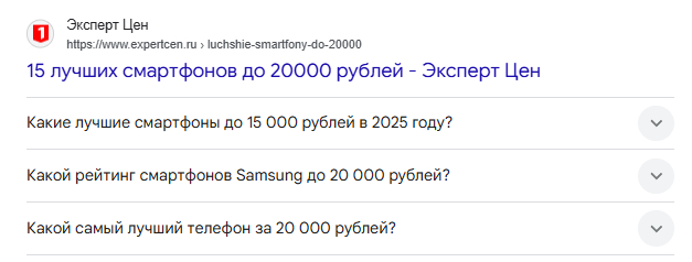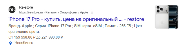 Микроразметка Schema.org позволяет дополнительно структурировать информацию о сайте. Она помогает поисковикам отображать расширенные сниппеты: рейтинги, цены, отзывы, FAQ и другую важную информацию. Такой расширенный сниппет выделяется в выдаче и привлекает больше внимания.