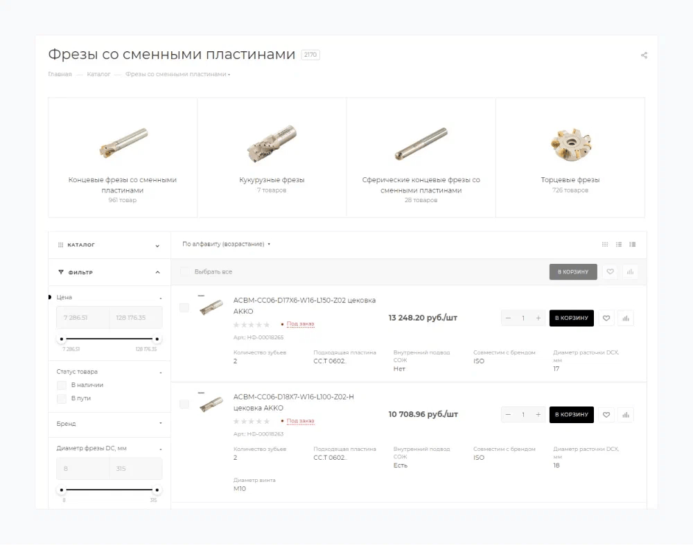 Компания Osnasteel продавала режущий инструмент только в Челябинске через сайт на решении Аспро: Корпоративный сайт. Чтобы выйти на рынок всей России и предложить клиентам полноценный онлайн-магазин, бизнесу понадобился новый сайт с современным дизайном, удобным каталогом и интеграцией с 1С.