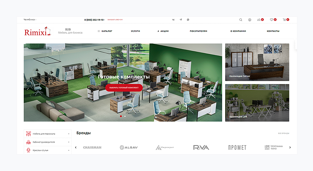 Компания Rimixi решила создать цифровую платформу, которая поможет бизнесу быстрее находить подходящую мебель для офисов. Проект построили на готовом техническом решении Аспро: Максимум.
