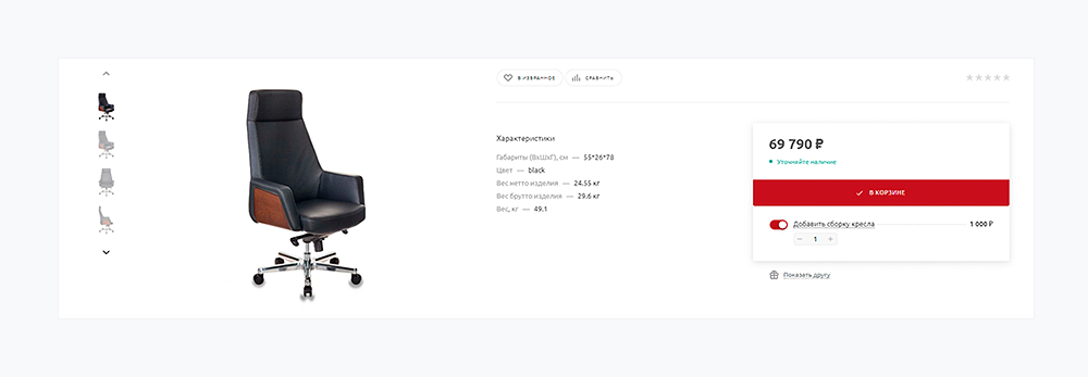 На платформе Rimixi модернизирован блок дополнительных услуг. При просмотре товара клиент может активировать ползунок и добавить услугу по сборке мебели. В каталоге показывается базовая стоимость, а в корзине формируется итоговая сумма. Расчет стоимости сборки происходит автоматически на основе цены и категории мебели.