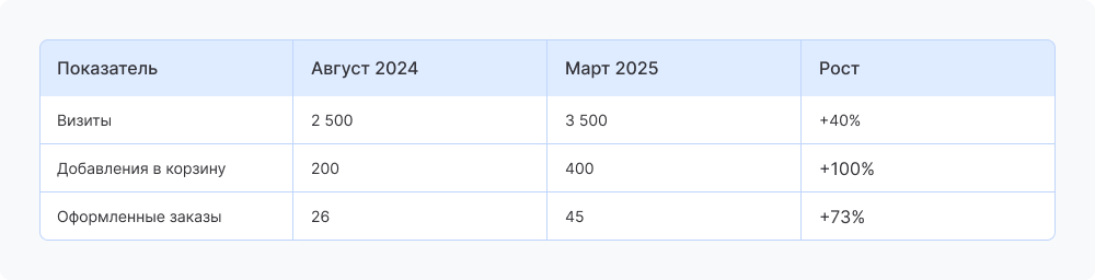 Особенно важно, что конверсии выросли сильнее трафика. Это свидетельствует о привлечении именно целевой аудитории, готовой к покупке.