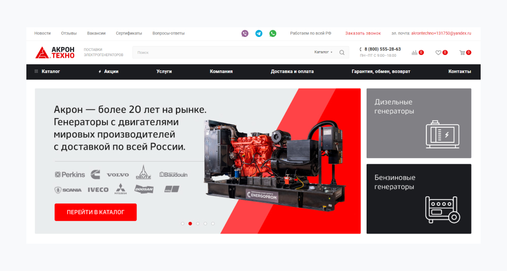 «Заметили важную деталь, которая помогла сэкономить много времени: конкуренты не делают слишком красивых сайтов. Никто не добавляет сложную графику, анимацию и интерактивные элементы. Поэтому для «Акрон Техно» решили сделать практичный дизайн в фирменном стиле компании».