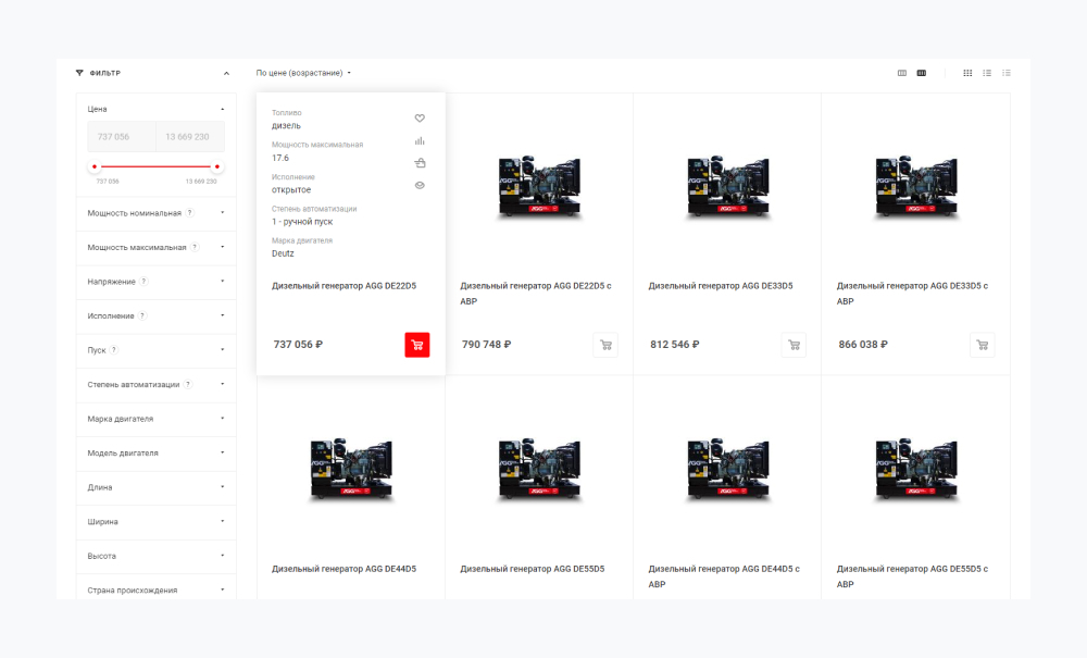 Для сложного технического оборудования критически важна возможность быстрого поиска по параметрам. Разработчики внедрили интеллектуальную систему фильтрации с удобными подсказками: