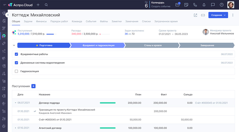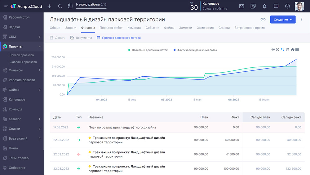 Все денежные операции концентрируются в карточке проекта. Такой подход обеспечивает: