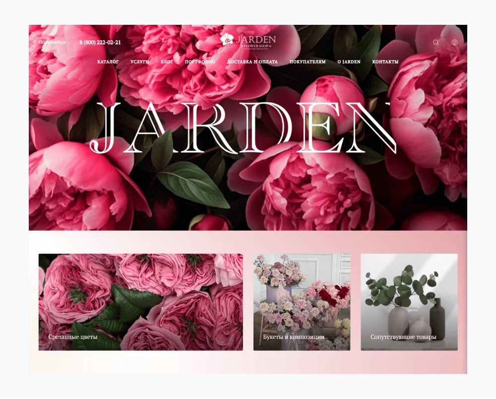 Стартовая страница формирует первое впечатление о вашем бренде. Разместите привлекательные баннеры с фотографиями композиций, топовые товары из каталога и информацию о ваших преимуществах.