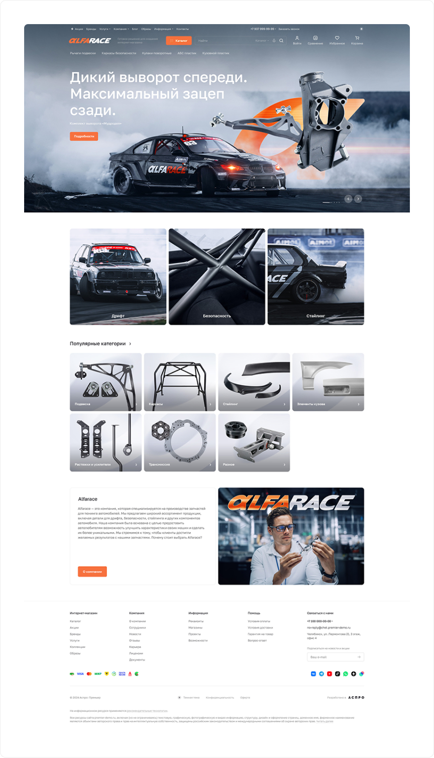 Для основных направлений — дрифт, безопасность и стайлинг — мы разработали отдельные визуальные решения.