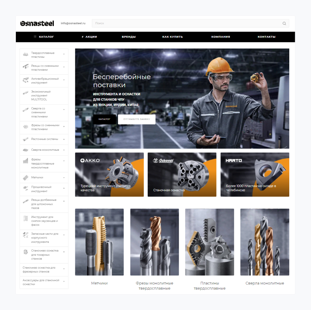 Компания Osnasteel столкнулась именно с такой задачей. Занимаясь реализацией режущих инструментов и оснастки для станков ЧПУ, они обслуживали только региональных клиентов через корпоративный сайт. Для масштабирования бизнеса потребовалось создать полноценную торговую площадку.