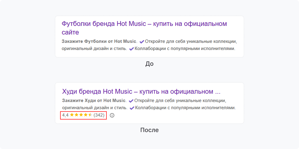 Для увеличения кликабельности результатов поиска мы реализовали улучшения: